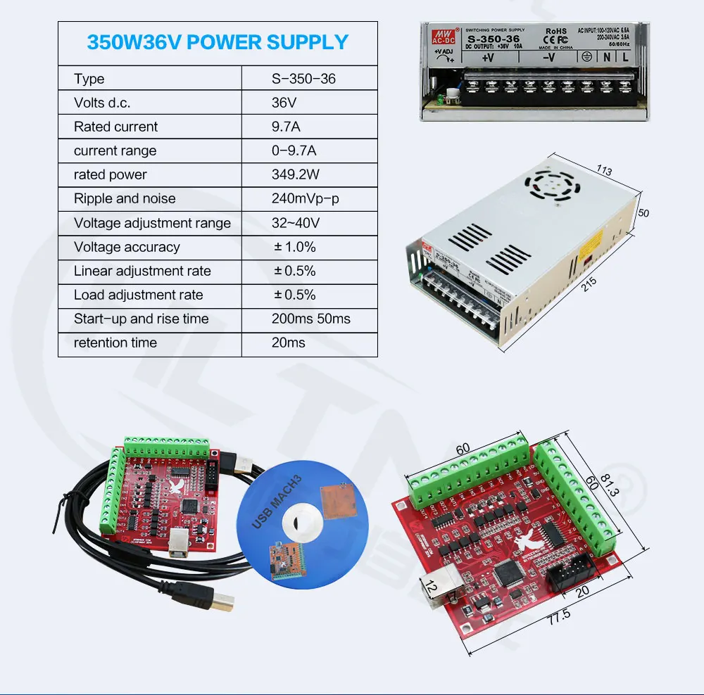 3-осевой ЧПУ комплект шагового двигателя Nema23 57 включает 3 шт. двигателя 2,2 нм 3 А + 3 драйвера + 1 шт. 350w3 6 в блок питания + карта MACH3