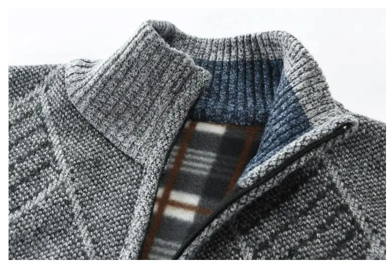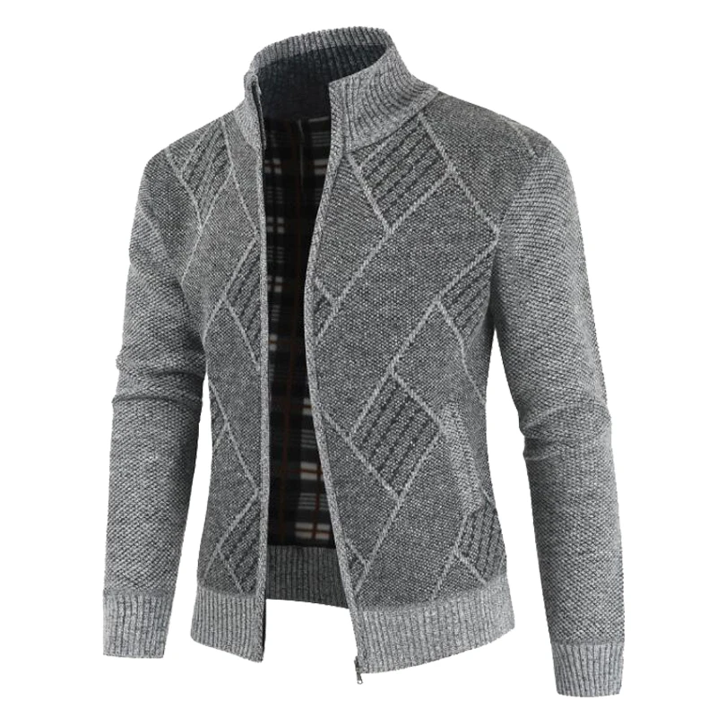 Геометрический вязаный мужской плотный флисовый кардиган, повседневный уличная одежда на молнии, обычный свитер, мужской теплый свитер с длинным рукавом, куртка