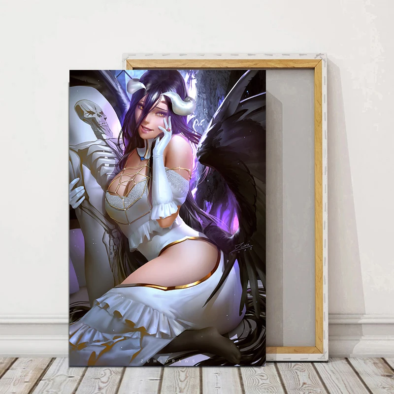 Постеры Overlord Albedo на заказ, Темный рыцарь, дьявол, черные крылья, девушка, холст, Художественная печать, картины на стену для декора гостиной