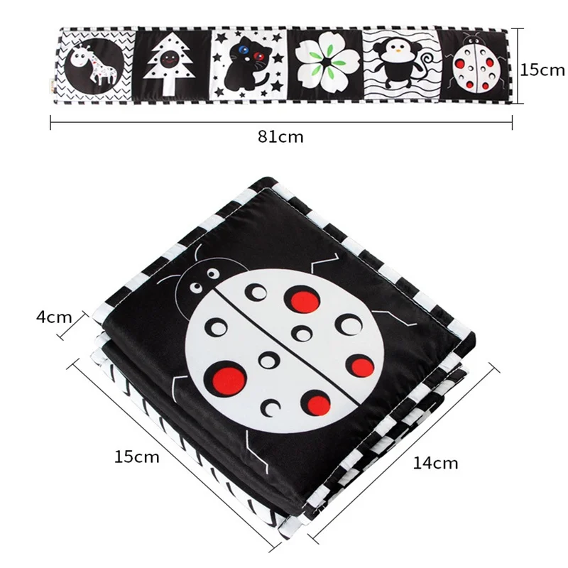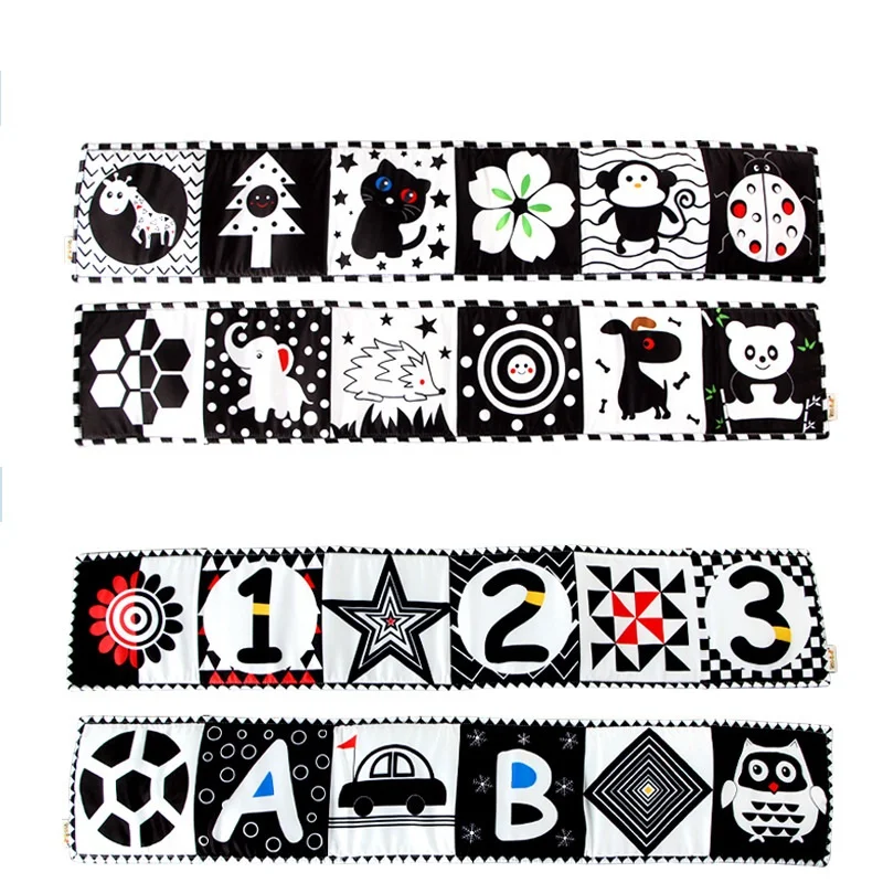 Новорожденные кроватки бампер Ткань Книга черный белый контактная ранняя стимуляция погремушки для младенцев кровать бампер развития игрушки 0 12 месяцев