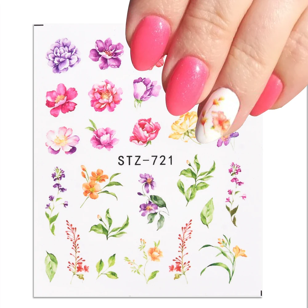Наклейки для ногтей с изображением цветов, Листьев, деревьев, животных, бабочек, татуировок, переводная картинка, маникюр, украшение для ногтей, летние Типсы, 1 шт.