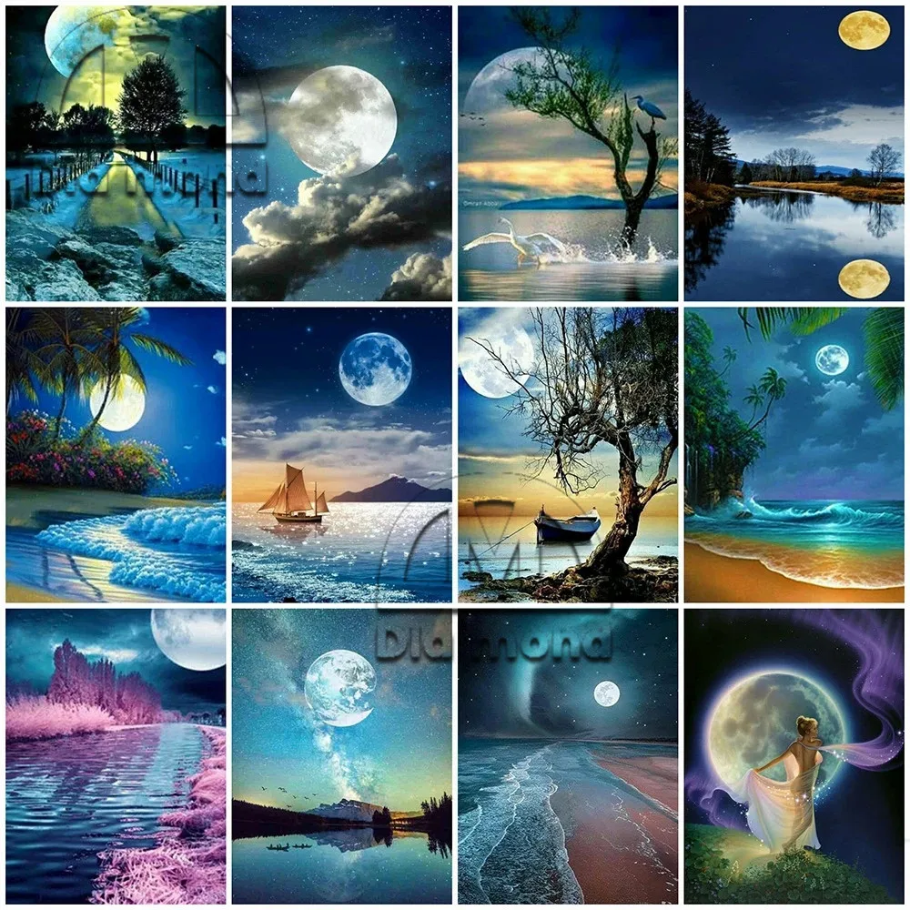 Алмазная картина, пейзаж, Луна, сделай сам, вышивка, Приморский кре...