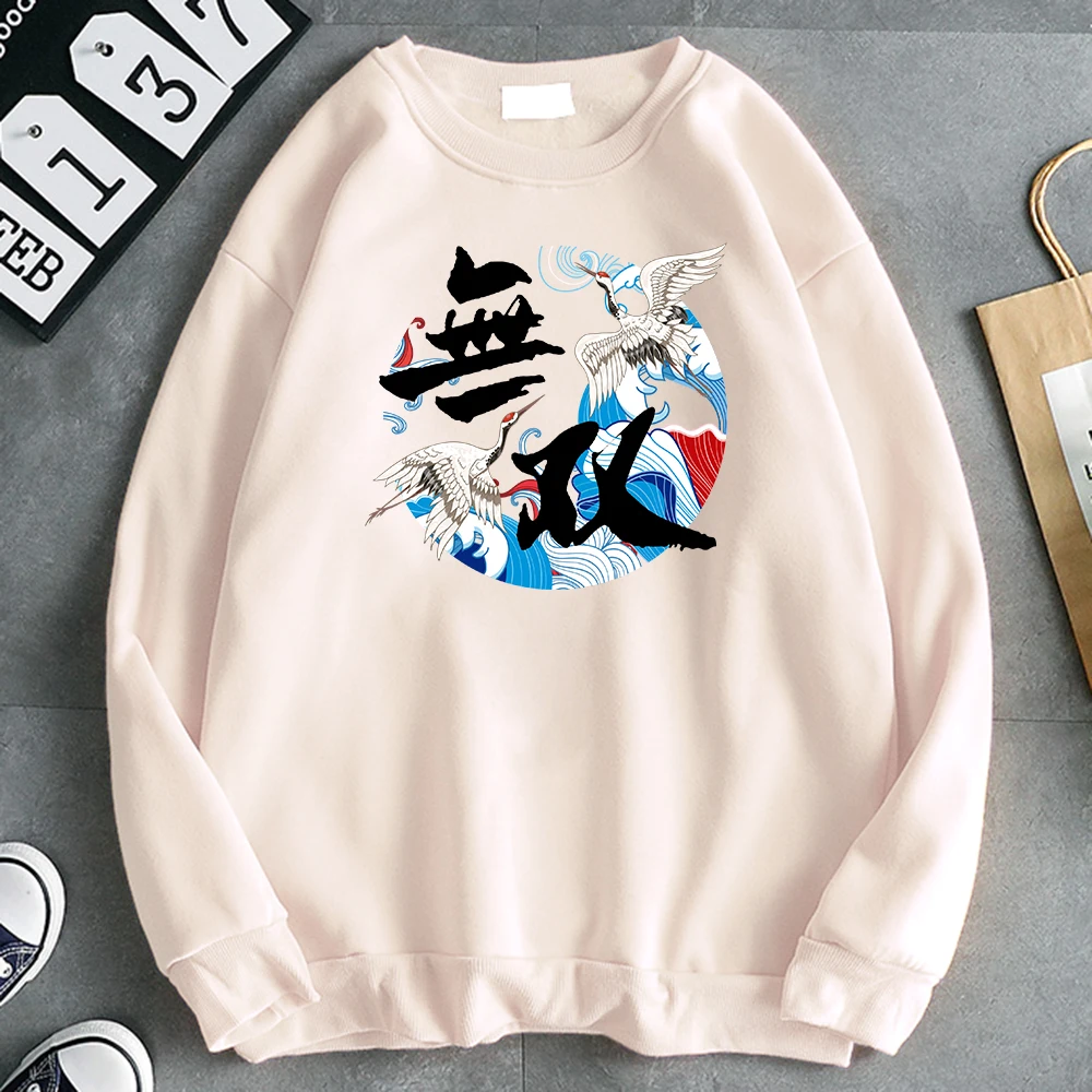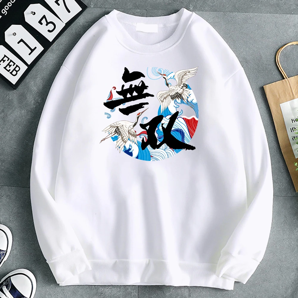 Толстовка мужская с китайскими буквами и журавлем, худи с японским принтом, удобная модная Толстовка в стиле панк, уличная Толстовка в стиле хип-хоп