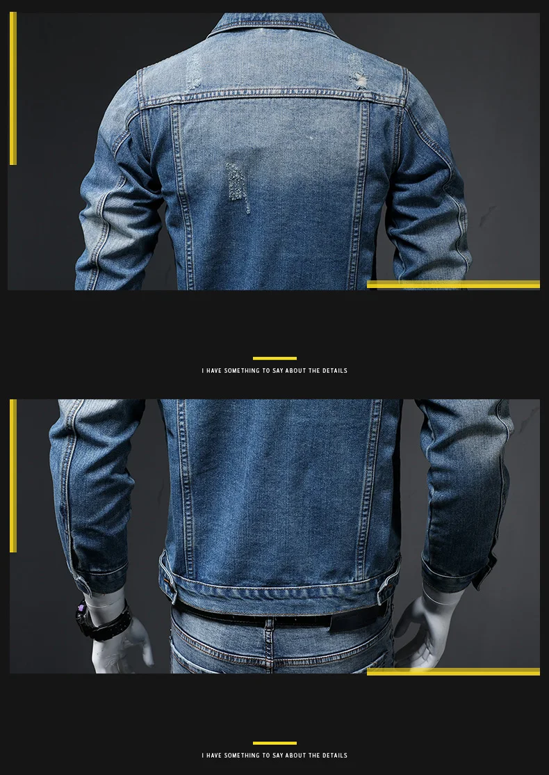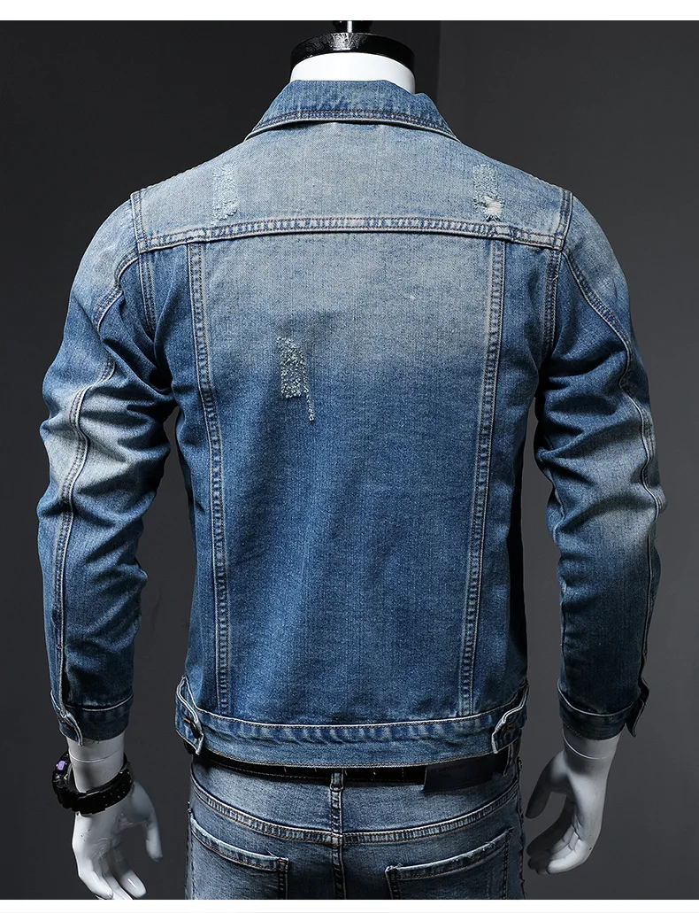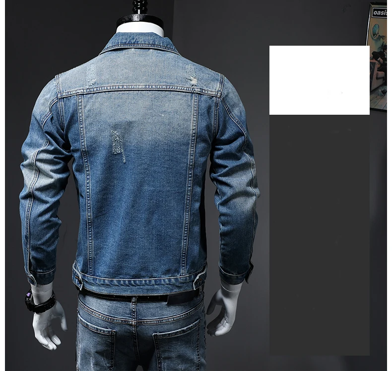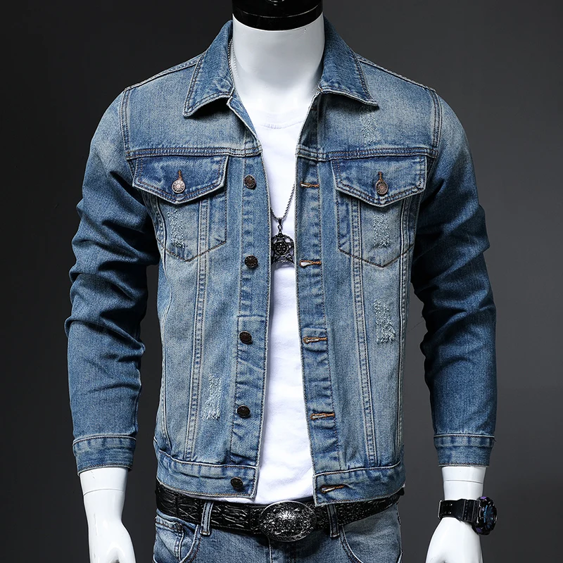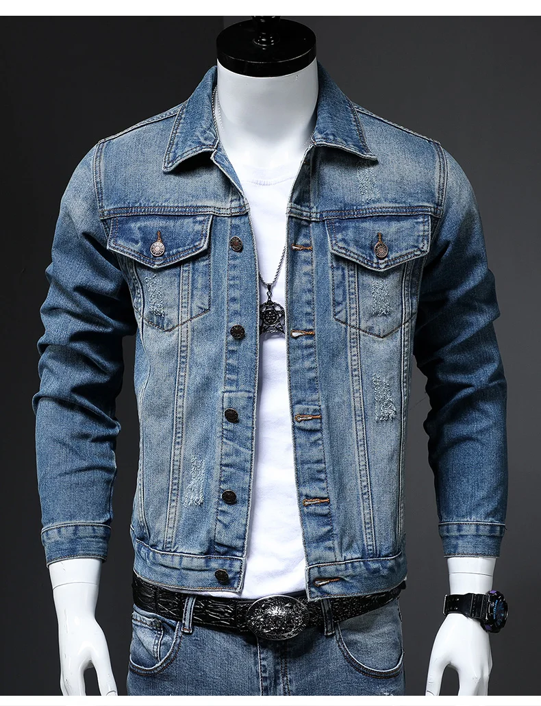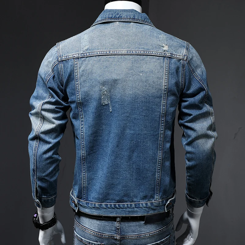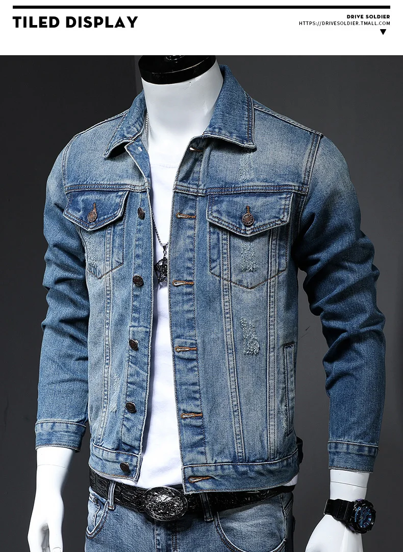 Мужская джинсовая куртка, в стиле ретро, в стиле панк, хип-хоп, с эффектом потертости, ковбойская куртка, уличная одежда, осень