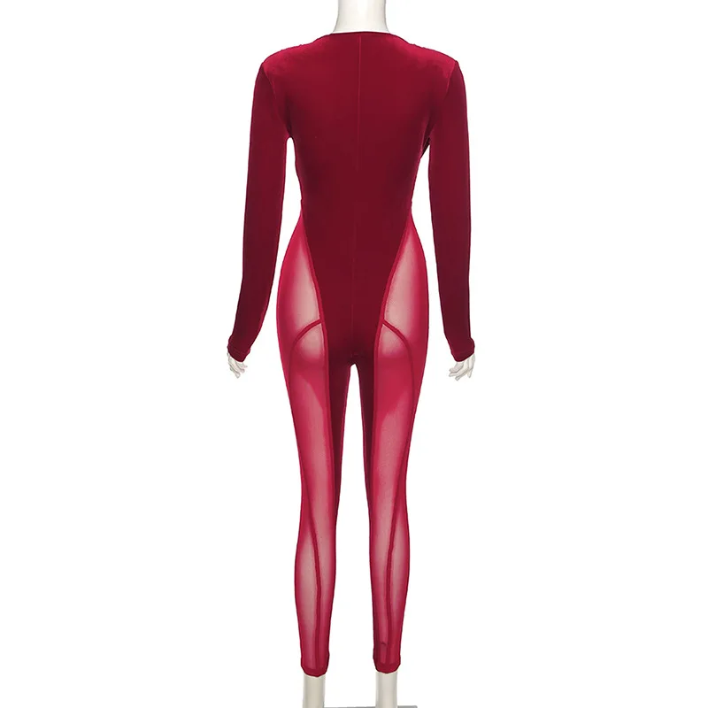 Женский бархатный комбинезон в сеточку, Облегающий комбинезон с глубоким V-образным вырезом, одежда для фитнеса и вечеринки, 2021