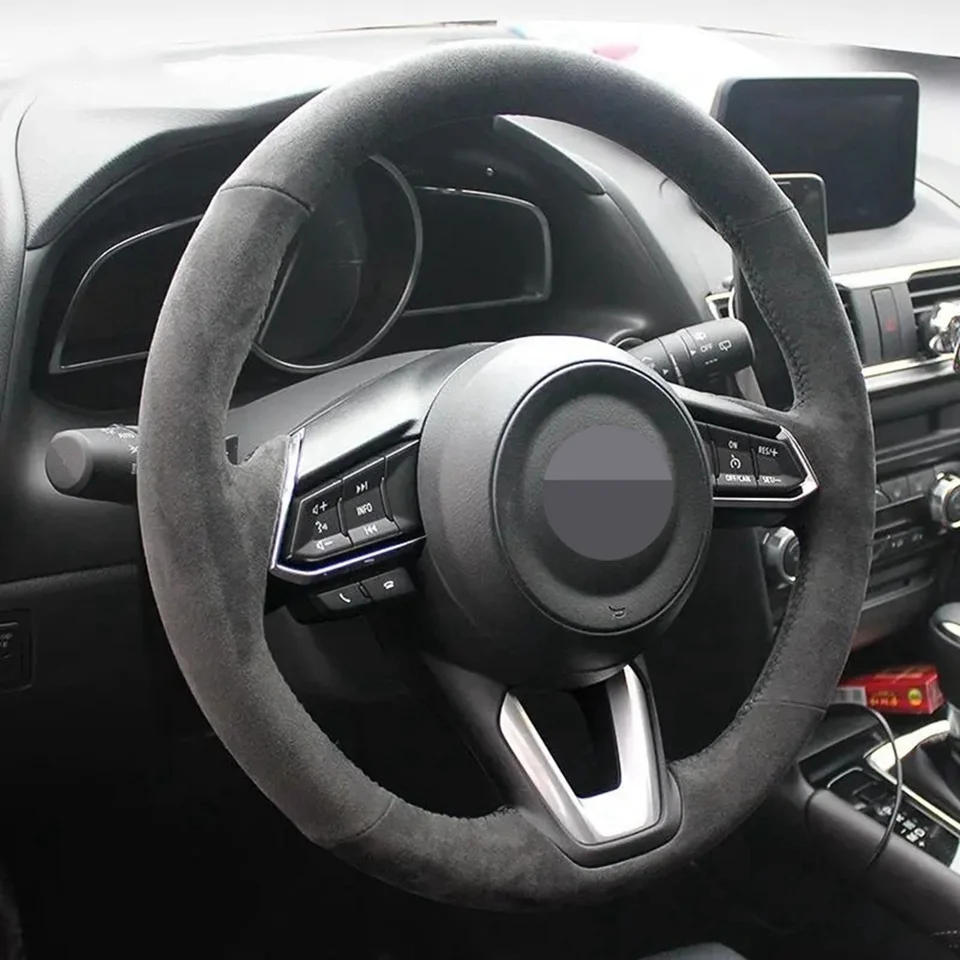 Сшитая вручную мягкая черная замша чехол рулевого колеса автомобиля...