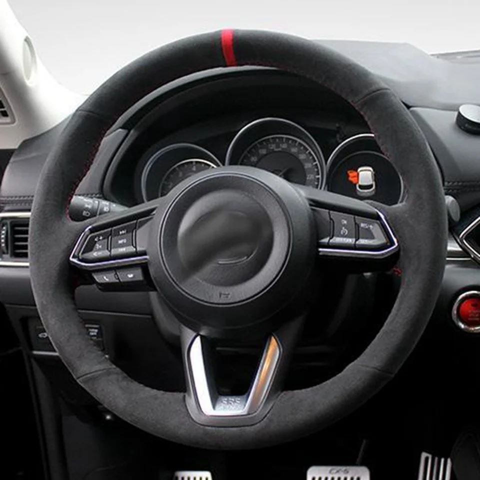 DIY ручной работы черная замша красный маркер чехол рулевого колеса...