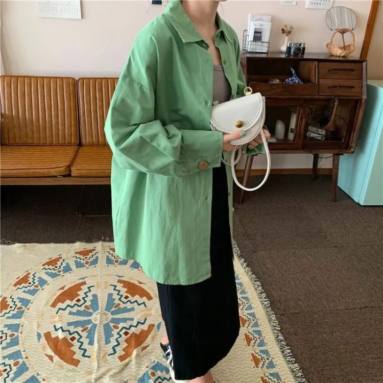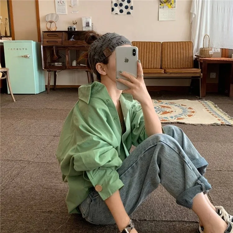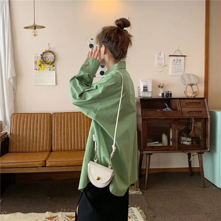 Женские весенне-осенние зеленые рубашки EBAIHUI, Свободные повседне...