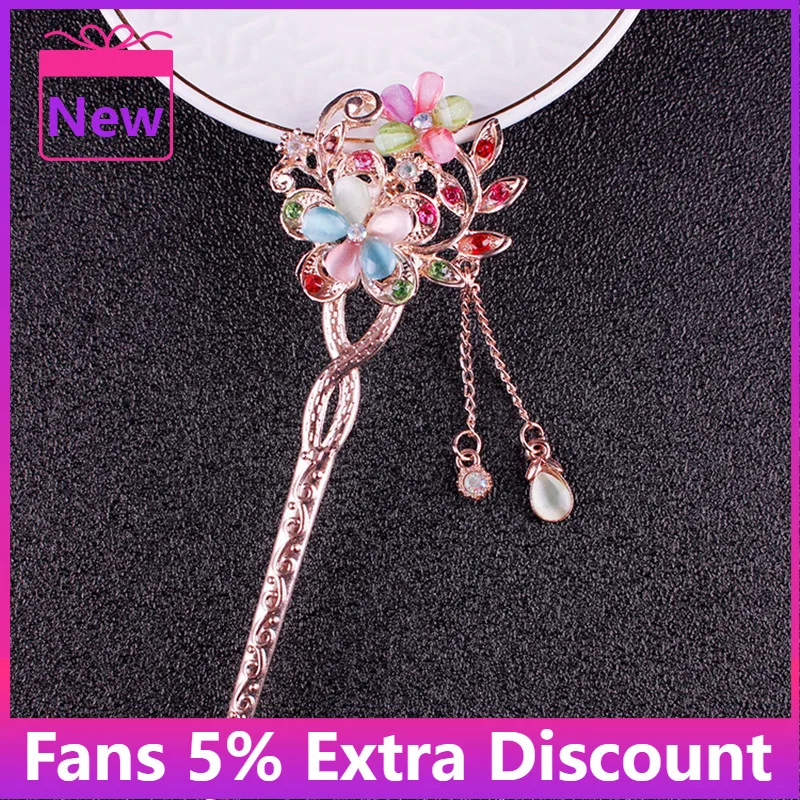 Модная новинка, заколка для волос кошачий глаз, двойная заколка для волос с цветком, Классическая заколка для волос, аксессуары для волос, Национальный головной убор