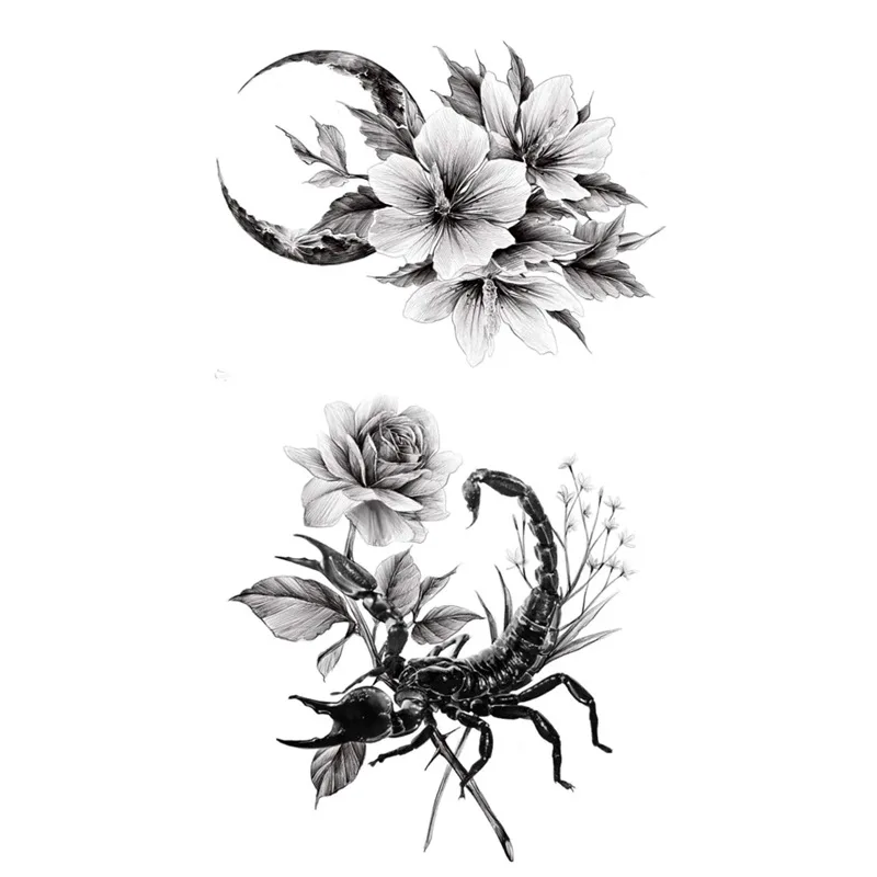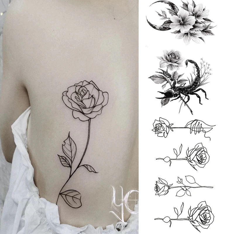 Черная Временная тату-наклейка, цветок, листья, тело, ноги, искусство на руку, Реалистичная искусственная татуировка, фестиваль детской косметики для женщин и девушек, 1 шт.