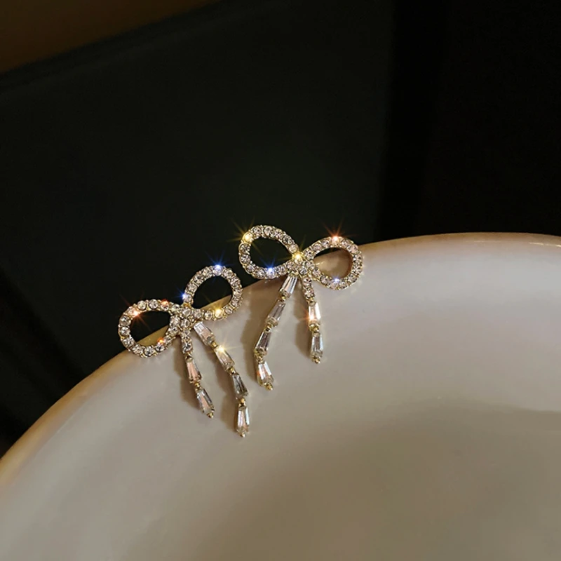 ➷Bowknot серьги♥Серьги с бантами-это последний тренд ювелирных изделий. Шикарные и уникальные серьги-гвоздики разработаны с геометрическими фигурами, состоящими из бриллиантов, придавая блеск любому наряду тонким и стильным образом.