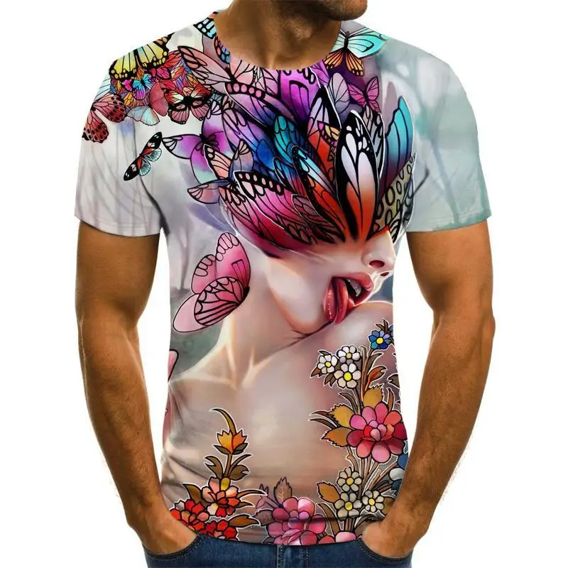 Мужская футболка с коротким рукавом, забавная футболка с цветным 3D-принтом, большие размеры, лето 2020