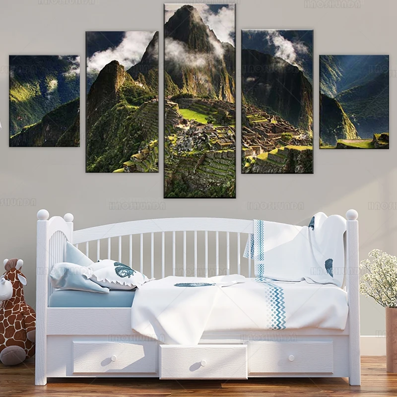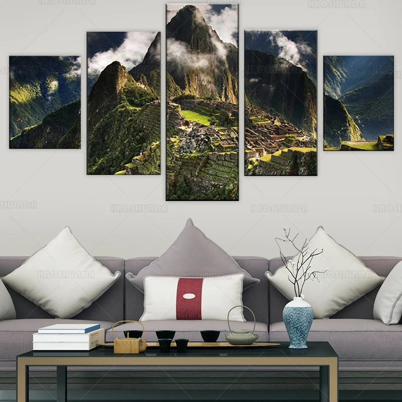 Современная Гостиная 5 шт. Machu Picchu Перу гора рисунок облачный пейзаж постер настенное Искусство Холст внутреннее украшение покраска