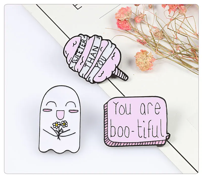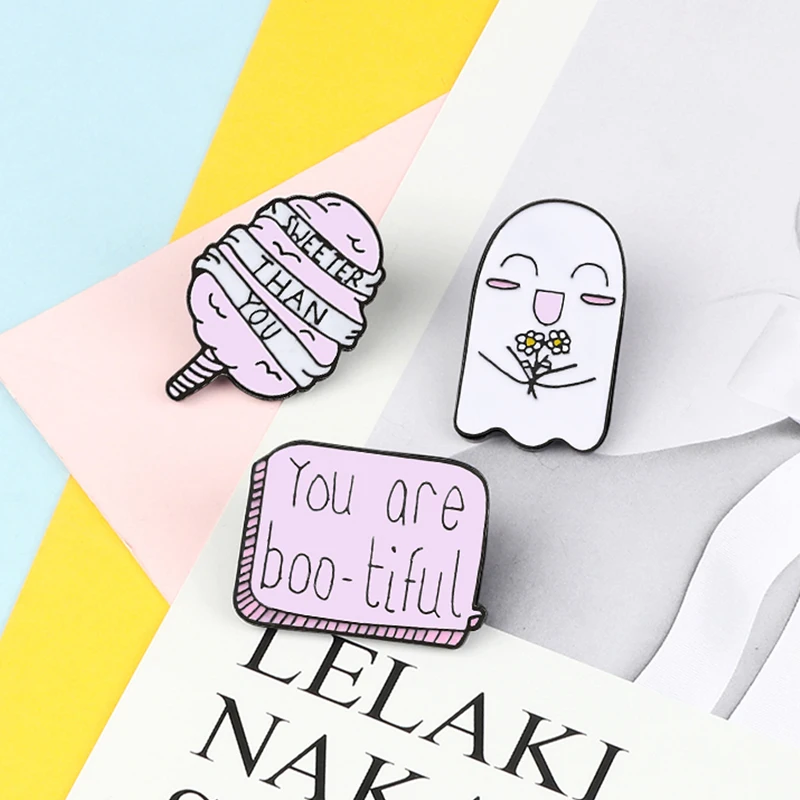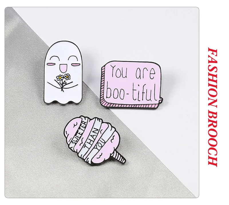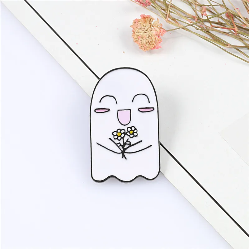 Милая розовая эмалированная заколка для сладкой ваты, с розой и призраком, брошка мультфильм, для рубашек, шляп, сумок, значок булавки на лацканы, украшения для Хэллоуина, подарок для детей