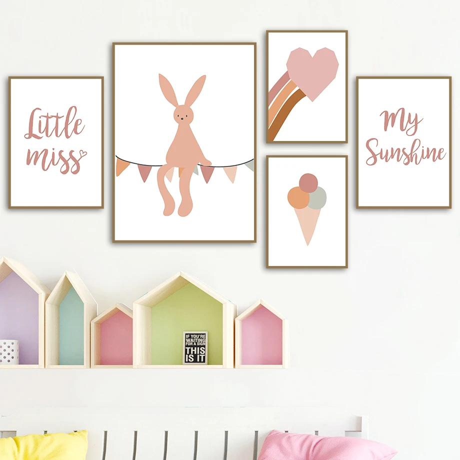 Кролик мороженое обувь любовь цитаты в скандинавском стиле плакаты и принты настенная Картина на холсте Мультяшные настенные картины для девочек Декор детской комнаты