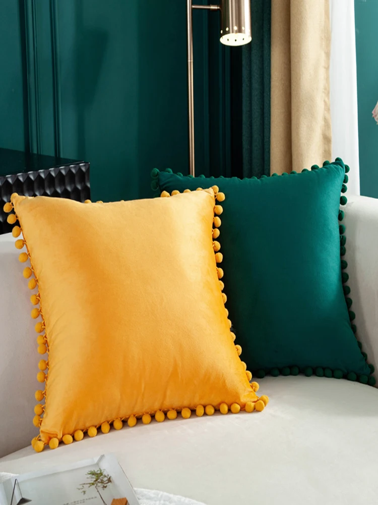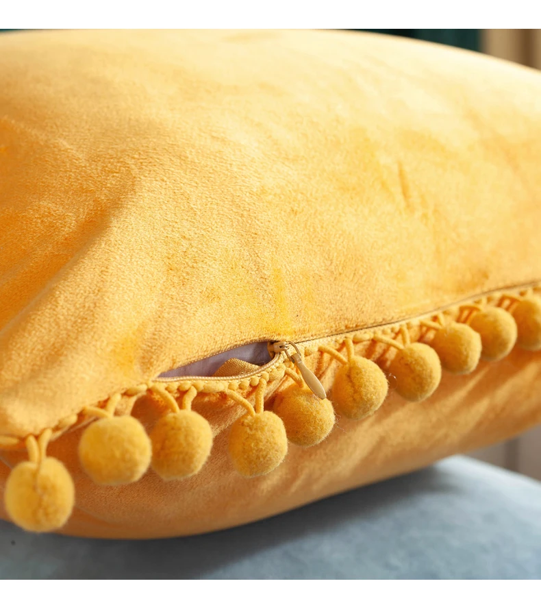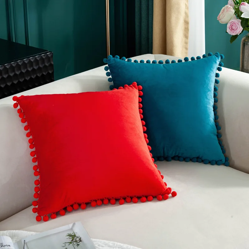 Бархатная подушка с помпоном, украшение для дома, наволочка для дивана, однотонная плюшевая наволочка с подвесным шариком для автомобиля, дома, гостиной