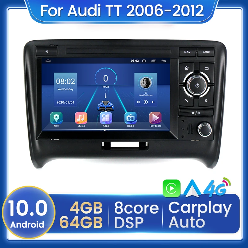 Автомобильный мультимедийный плеер, радио, 2 DIN, IPS 4G + 64G, Android 10, DVD, GPS, для Audi TT MK2, 8J, 2006, 2007, 2008, 2009, 2010, 2011, 2012, 4G, LTE, DSP