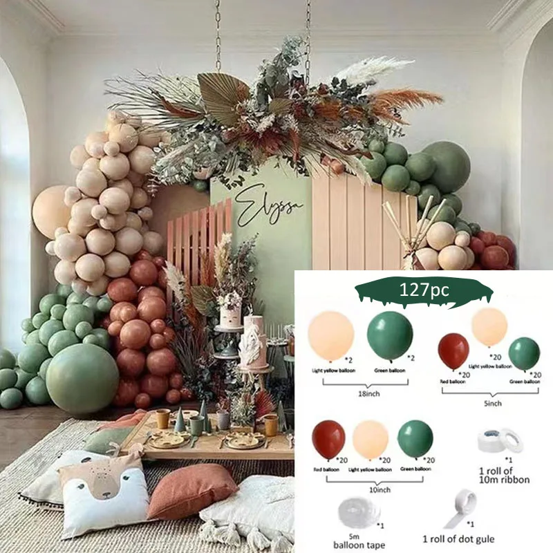 127 шт., цепочка с зелеными воздушными шарами для детей