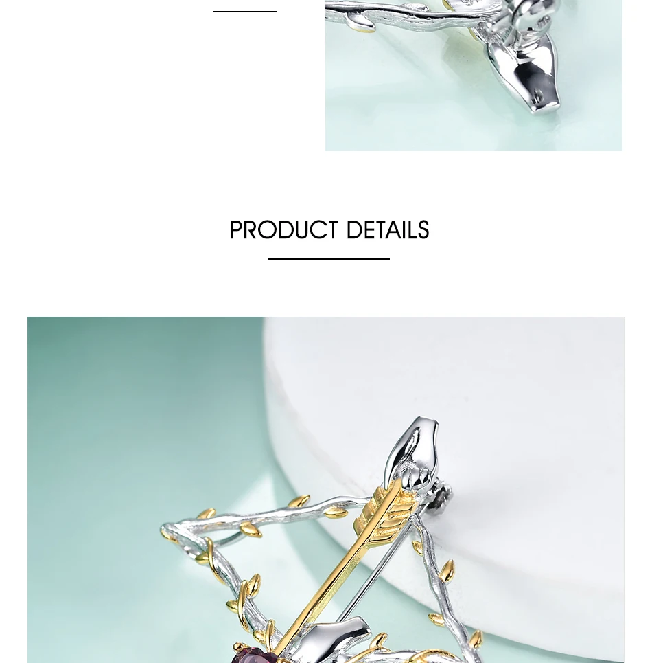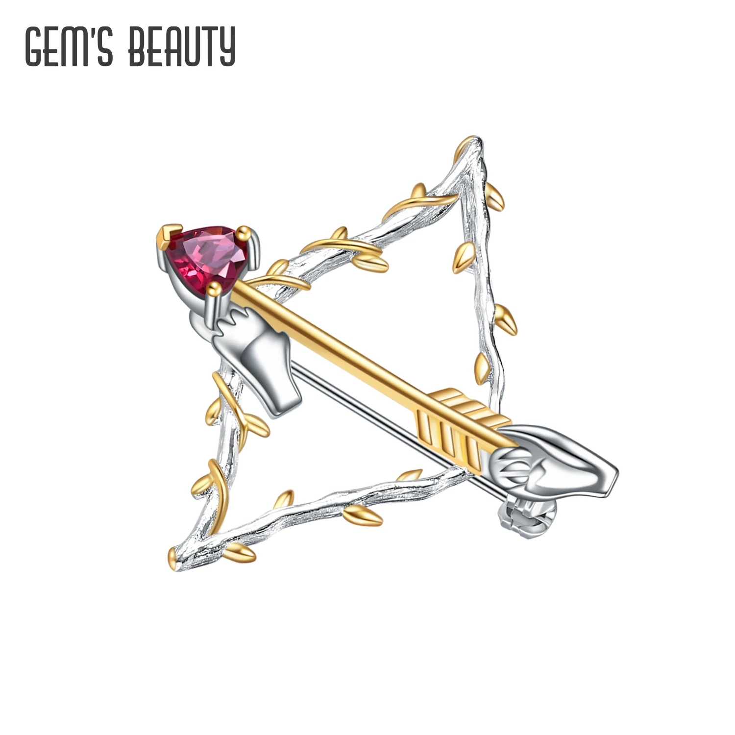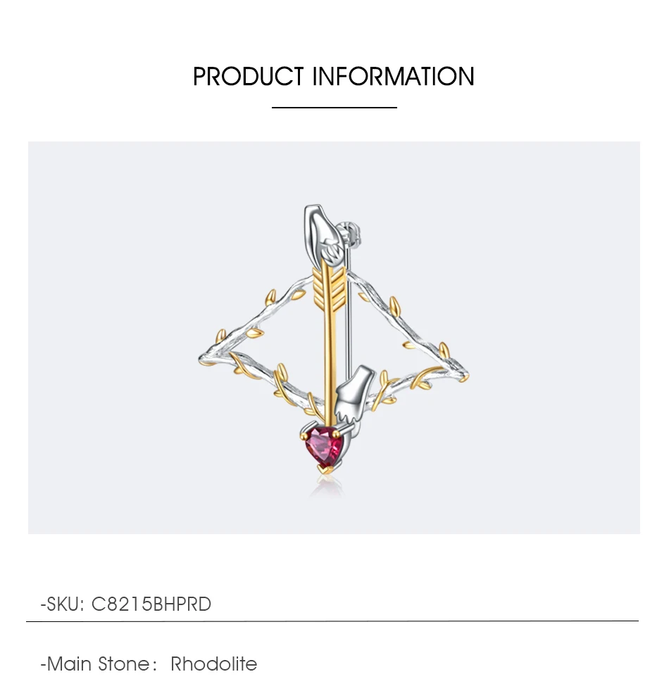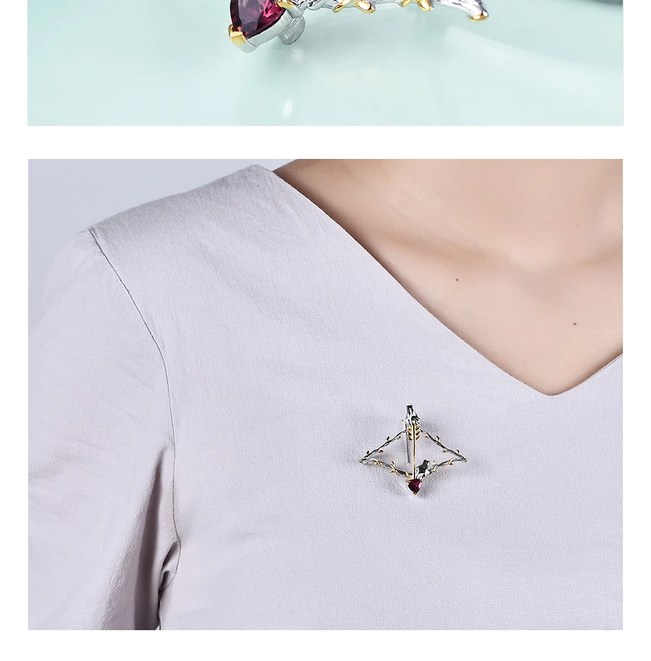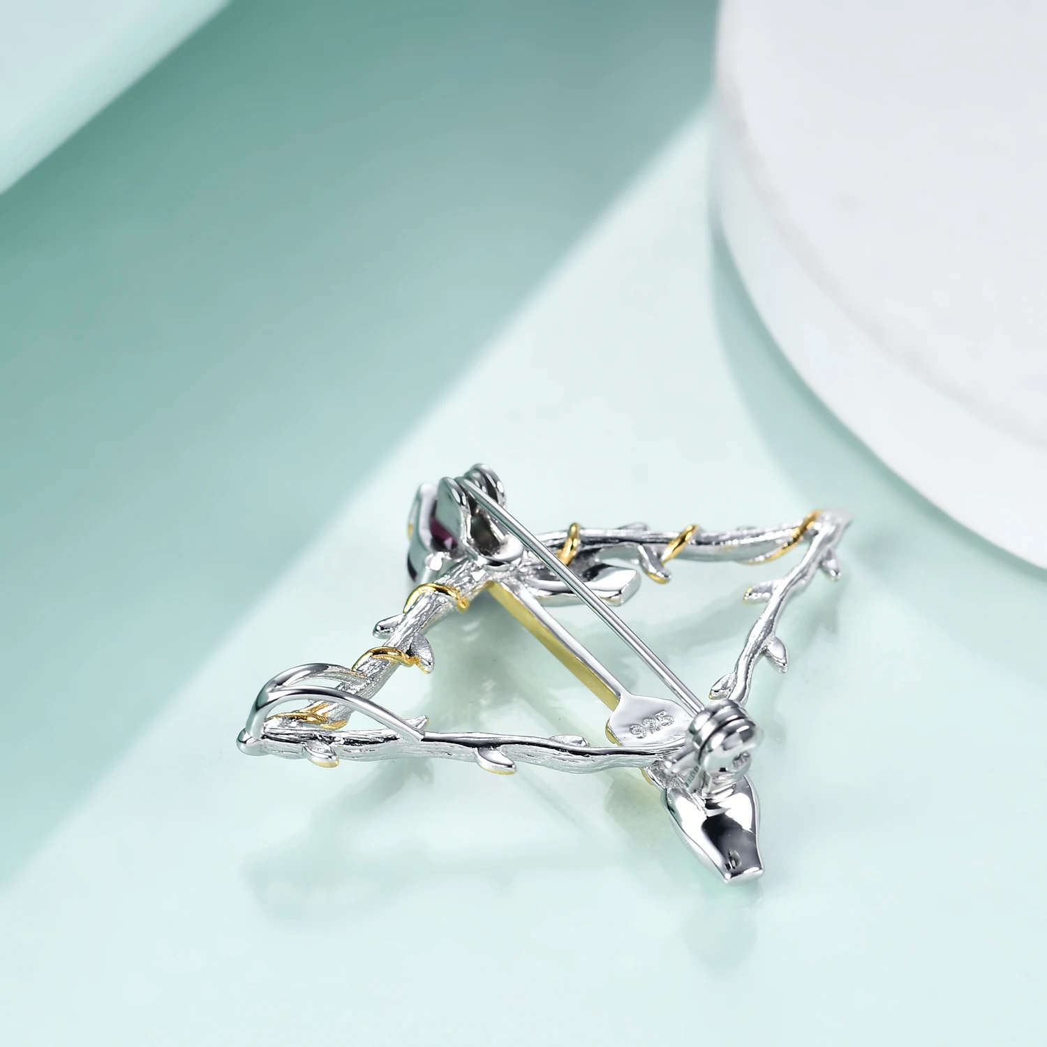Женская Брошь в виде стрелы из серебра с натуральным родолитным гранатом