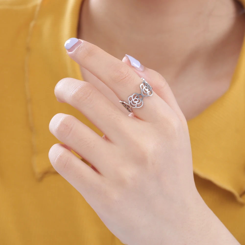 Женское кольцо из нержавеющей стали, с вырезами и цветами