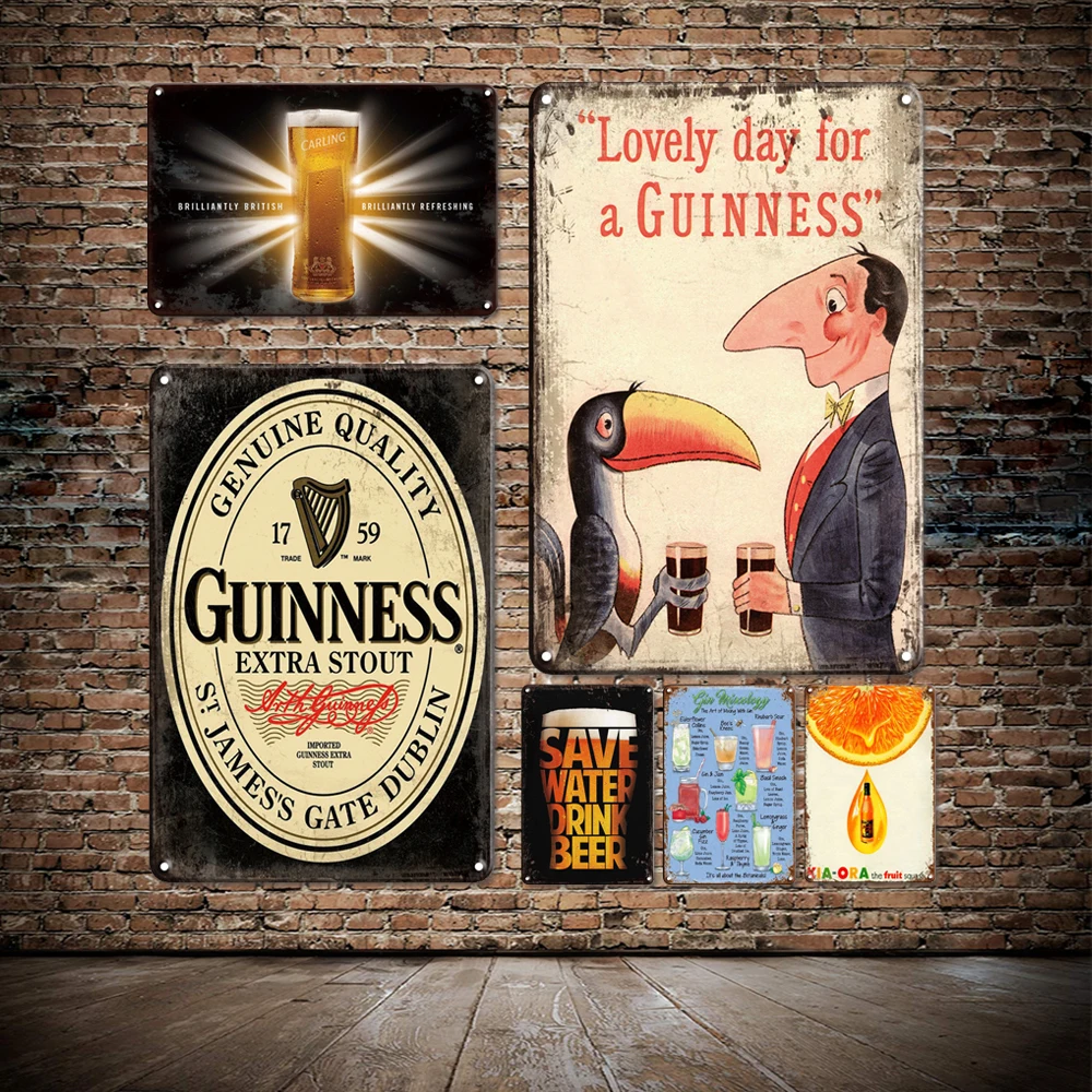 Винтажный пивной коктейльный металлический декор жестяной знак Гиннесс бар настенный Декор Ретро мужская пещера настенный постер