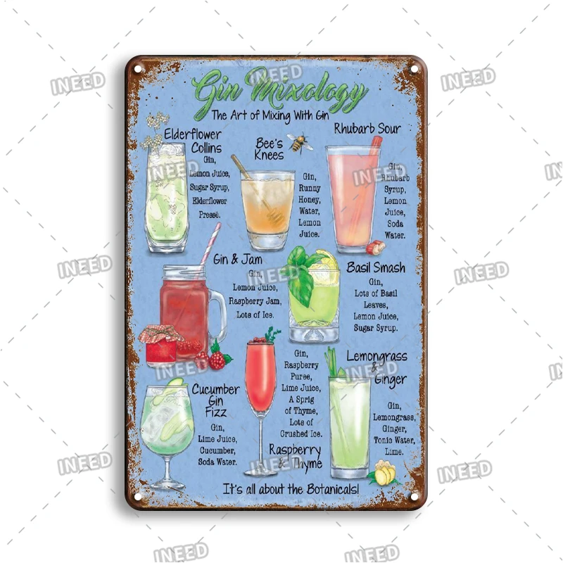 Коктейльное искусство роспись стены стикер жестяной знак винтажный ...