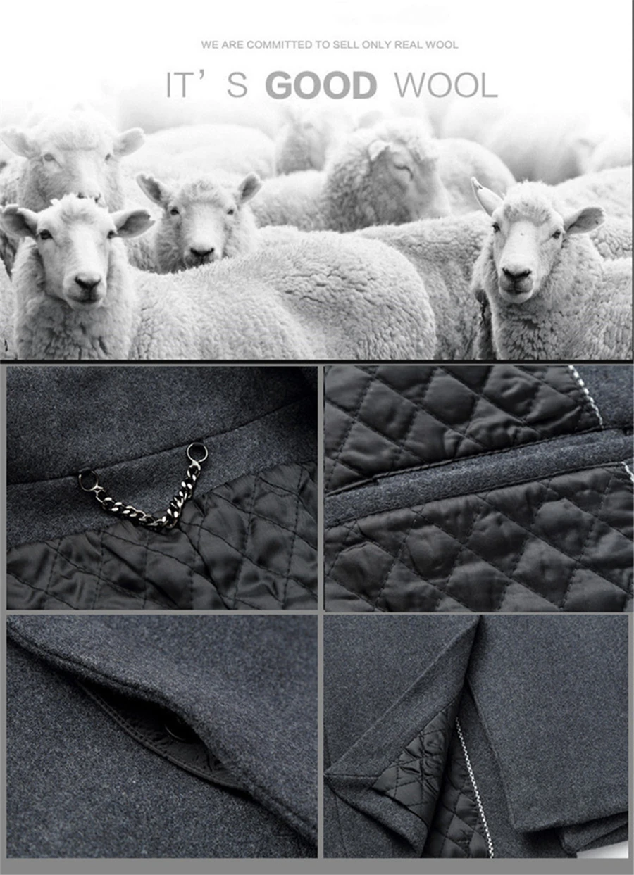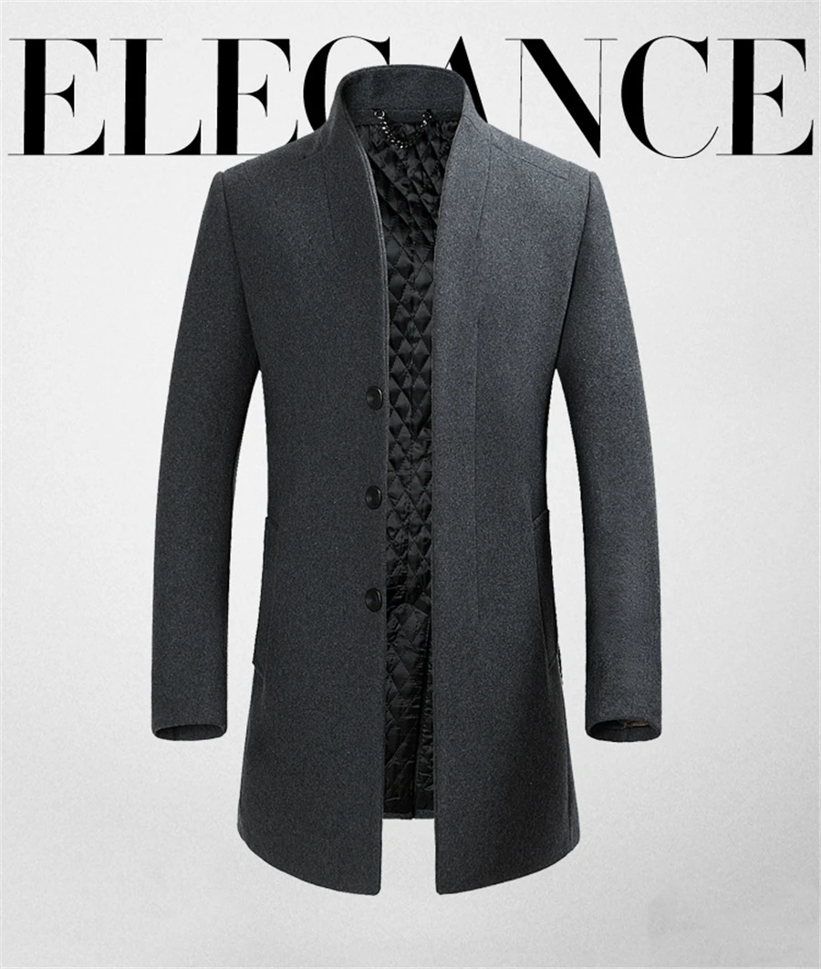Мужское шерстяное пальто, однотонное пальто из смесовой шерсти, теп...