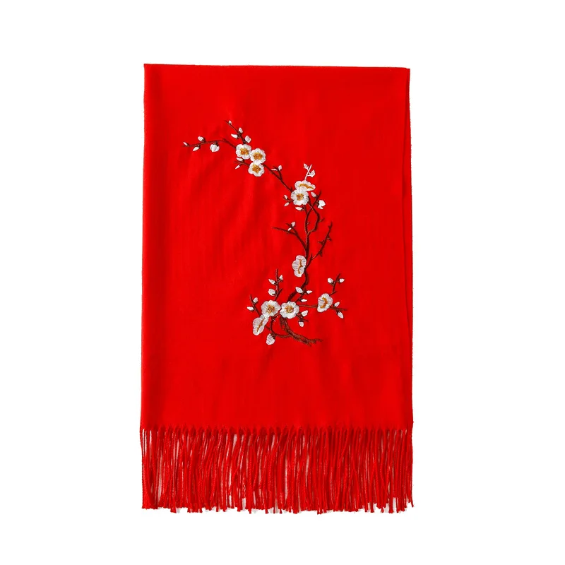 Шарф женский из пашмины, с цветочной вышивкой и кисточками, зима 2021, шарф из искусственного кашемира