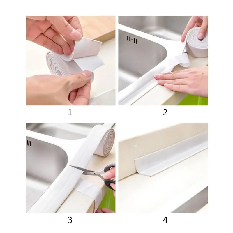 Гибкая уплотнительная лента из ПВХ: с утопленной конструкцией, ее можно согнуть на 90 градусов, чтобы обеспечить идеальное уплотнение соединений между стенками. Он может быть влагостойким и стойким барьером для предотвращения антисанитарных условий на унитазе, столешнице, ванне и душах.