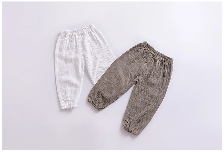 Льняные плиссированные штаны для маленьких мальчиков и девочек летн...