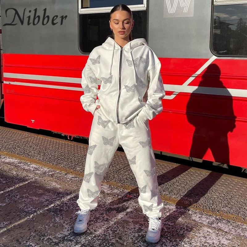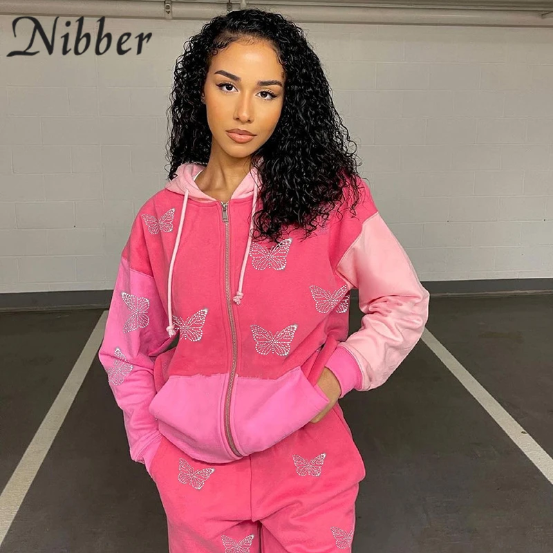 Куртка на молнии с принтом бабочки Nibber Y2K, осенние свободные брюки, Повседневная модная уличная одежда для женщин, спортивная одежда, Лидер продаж 2021