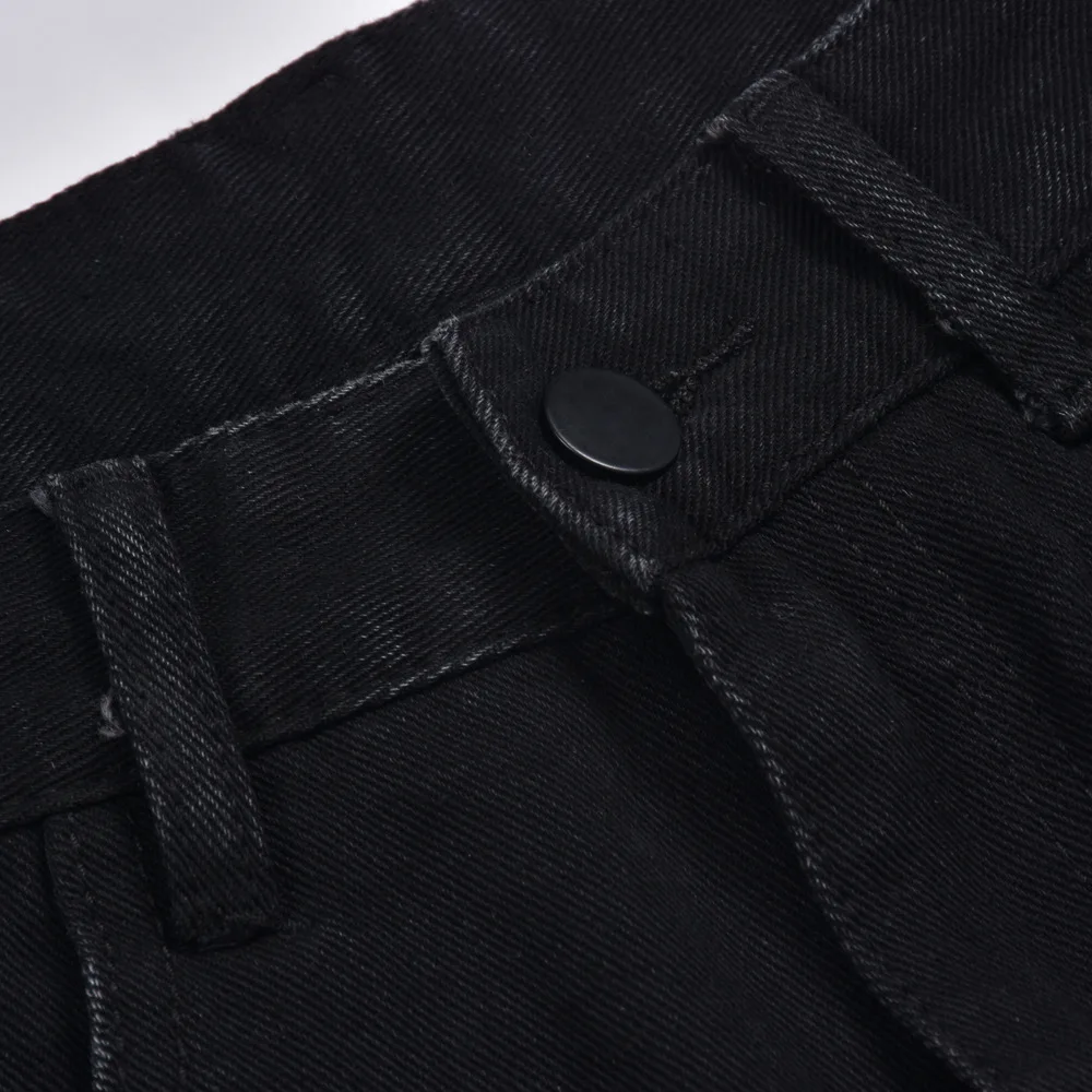 Женские джинсы с низкой посадкой Zim, черные джинсовые брюки с рису...
