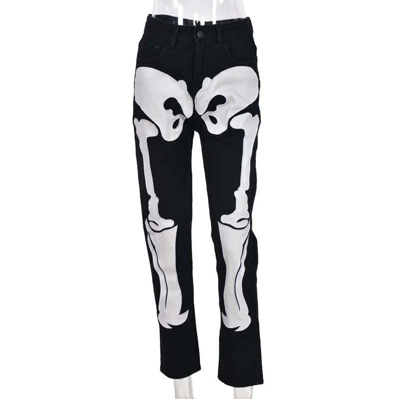 Осень 2022, женские винтажные джинсы Gitana с принтом скелета, штан...