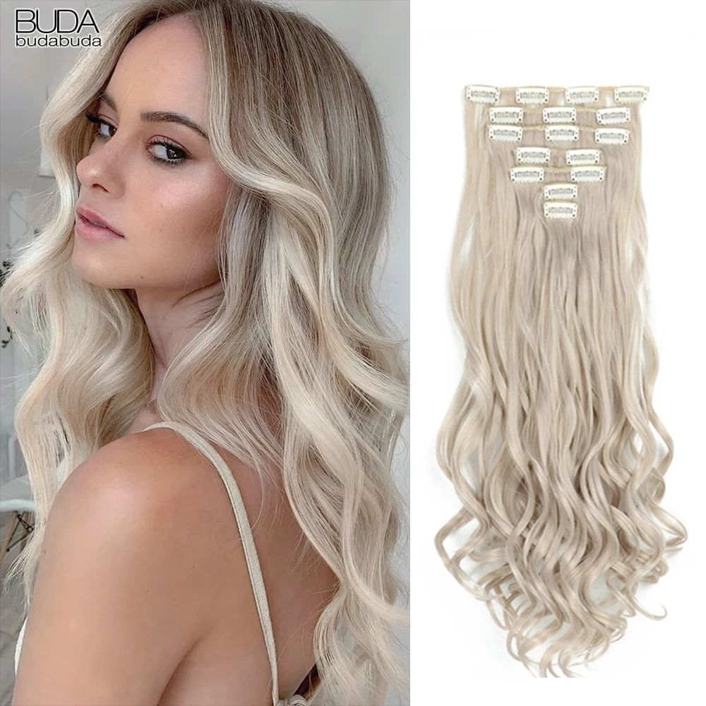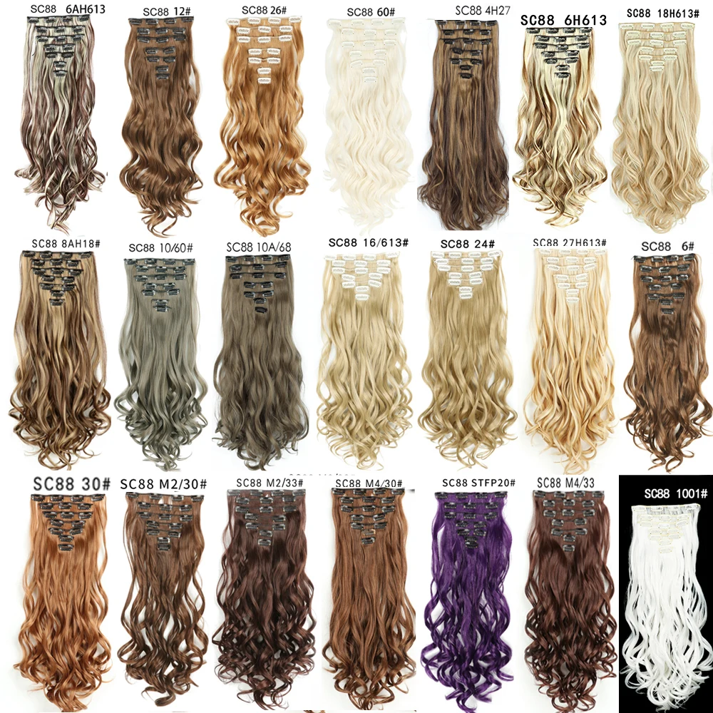 Искусственные волосы для наращивания, натуральные волнистые, 7 шт.компл., 22 дюйма, с эффектом омбре, розовые, фиолетовые, модные шиньоны, для белых женщин, 16 зажимов