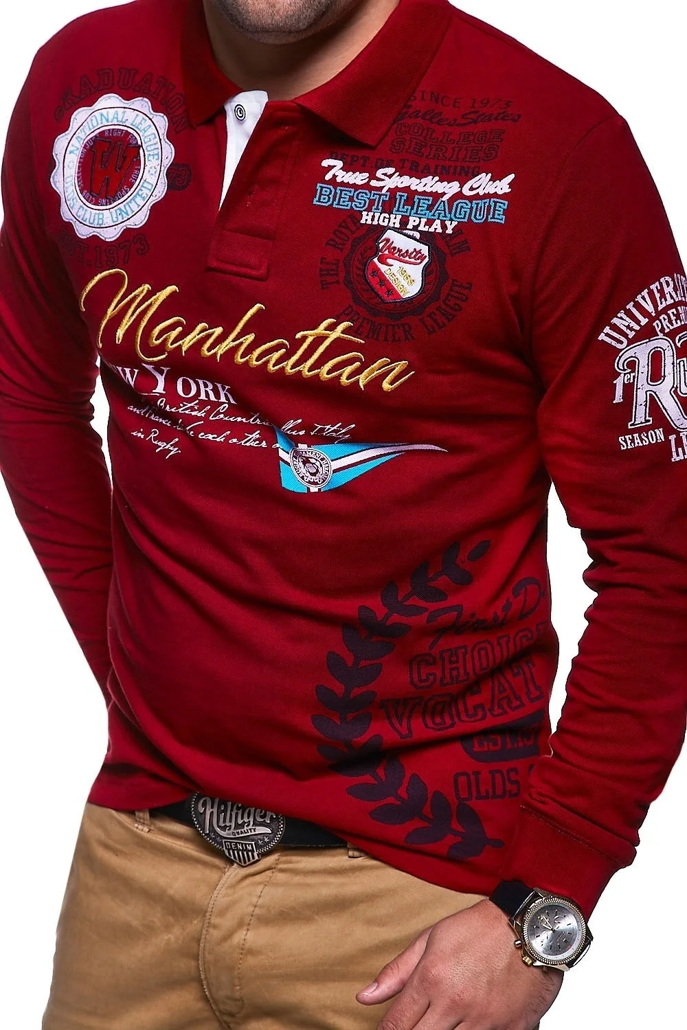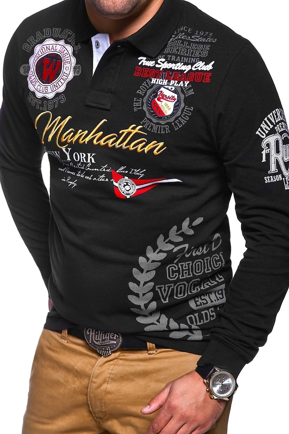 Мужская рубашка-поло с длинным рукавом и отложным воротником