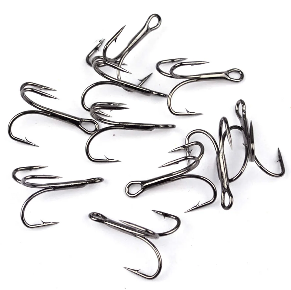 10 шт.лот Высокоуглеродистая сталь 246810 # тройные Крючки Sanben с поворотным круглым изгибом, черные острые рыболовные крючки для ловли окуня, рыболовные снасти