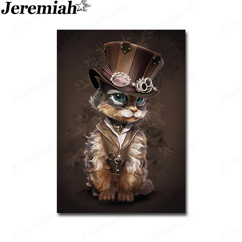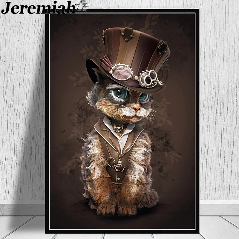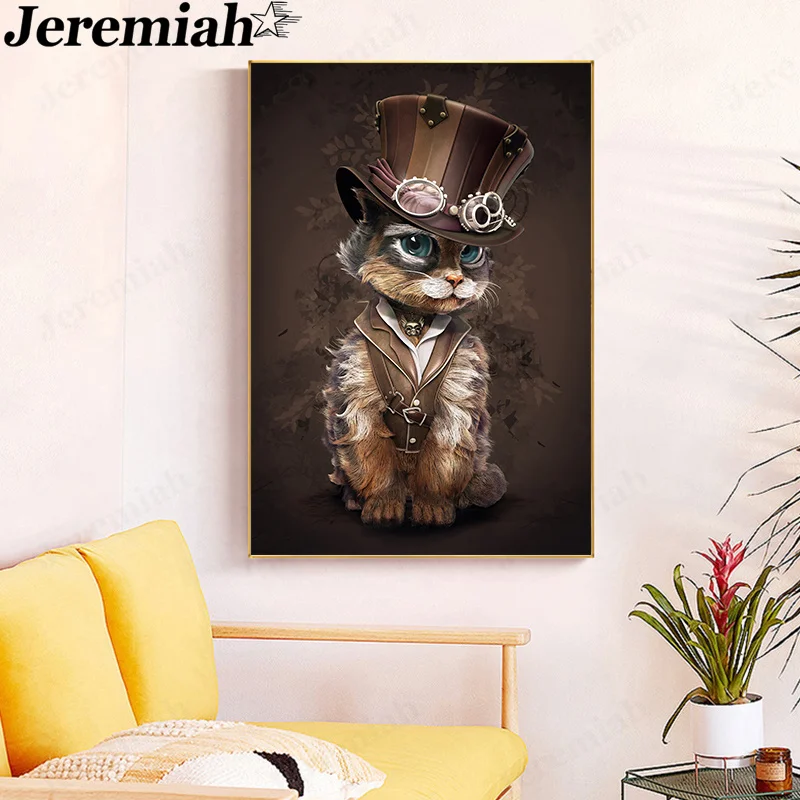 Постер в стиле панк, кошка, холст, живопись, Смешные животные, паровой постер, настенное искусство, Современное украшение для дома, аксессуары