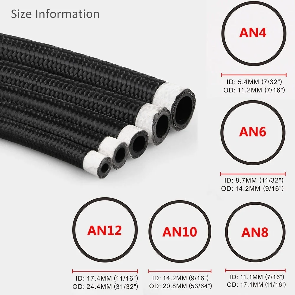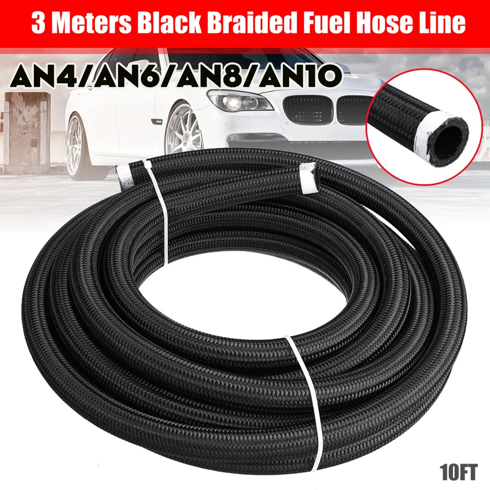 Универсальный автомобильный топливный шланг AN4AN6AN8AN10AN12, шланг для нефти и газа, нейлоновая оплетка, трубопровод, радиатор, тормозной шланг, топливные трубы, 3 метра