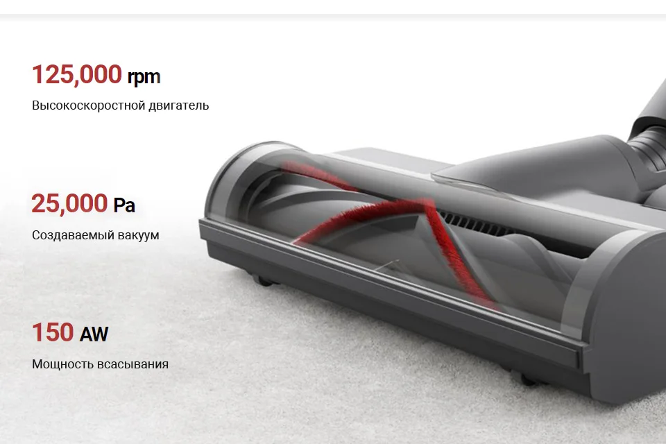 Dreame T20 оснащён новейшим высокоскоростным электромотором Space 4.0 – собственной разработкой инженеров Dreame Technology Inc. Двигатель развивает скорость вращения 125 000 оборотов в минуту и силу всасывания до 25 000 Па – это позволяет пылесосу справляться даже с сильными загрязнениями, собирая до 99,9 процентов пыли и мусора.