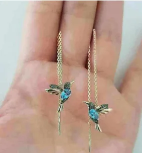 Новые уникальные длинные висячие серьги с птичками Колибри для женщ...