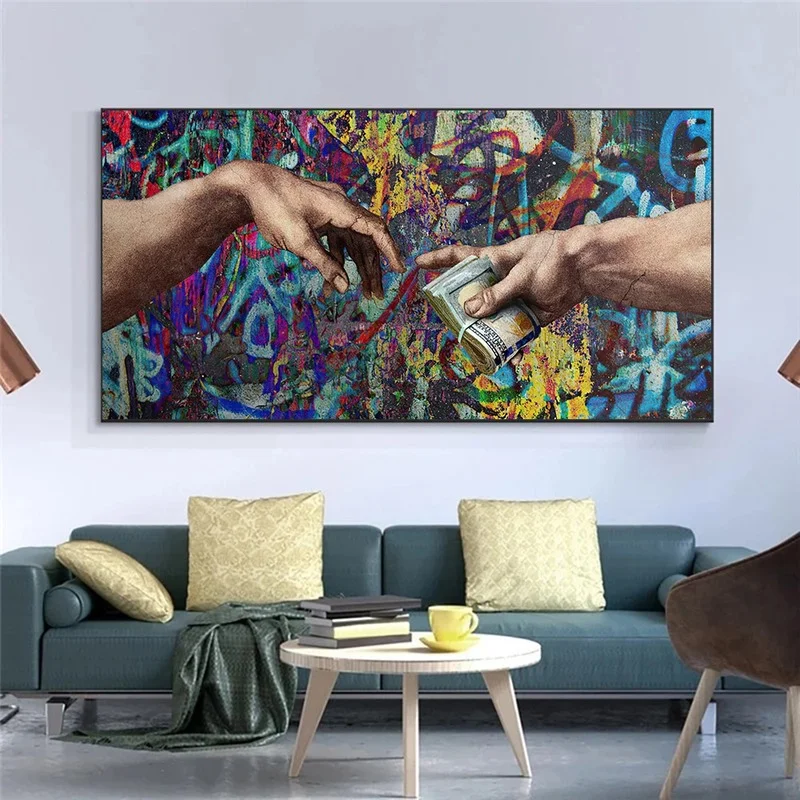 Граффити уличные деньги искусство 100 долларов холст живопись плака...