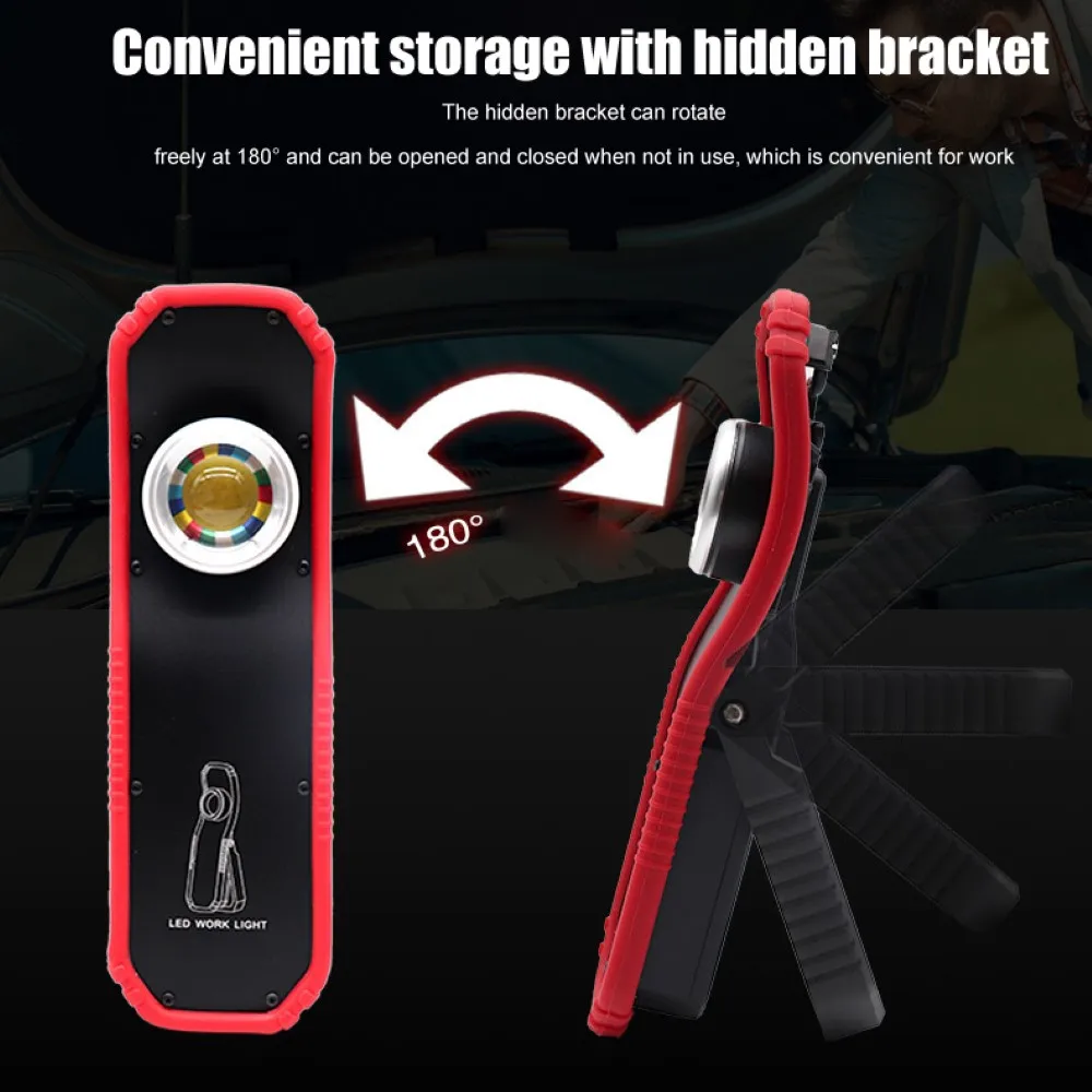 Описание: Светодиодная технология COB обеспечивает высокую яркость и кристально чистоту.На дне имеется мощный магнит, его можно приклеить к любой железной поверхности.Прочная регулируемая ручка, вы можете легко прикрепить ее и положить куда угодно.USB-вход и выход, удобный для подзарядки светильник в любое время, может служить резервным портативным зарядным устройством для вашего телефона или других мобильных устройств в экстренной ситуации.Компактный, легкий, пластиковый крючок, удобный для переноски.Подходит для активного отдыха, кемпинга, разведки, ночной рыбалки, ремонта автомобилей и т. д.