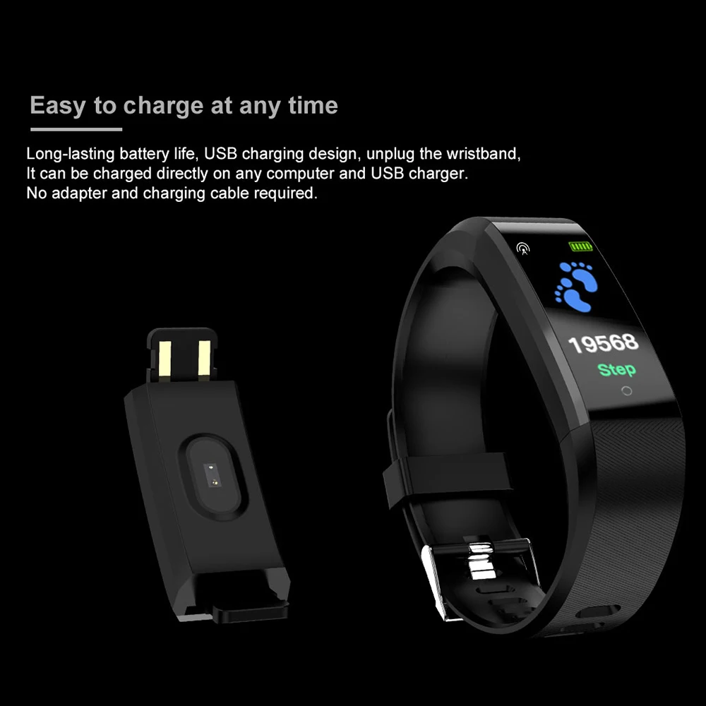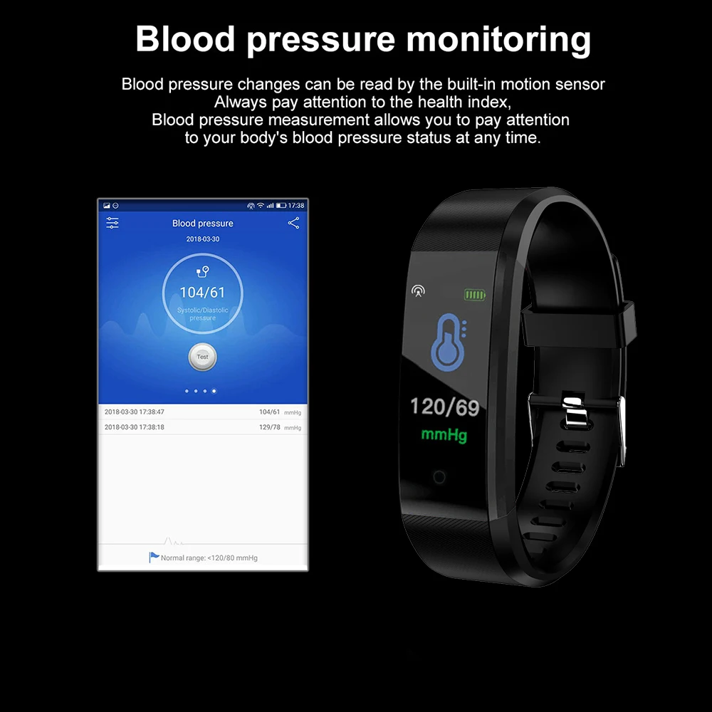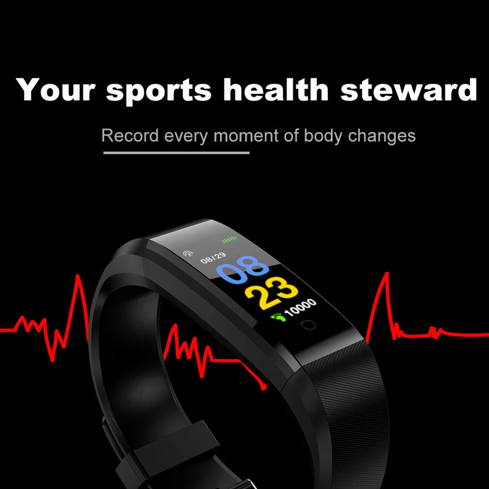 Смарт-браслет с TFT-экраном 0,96 дюйма, пульсометр, измерение артериального давления, фитнес-трекер калорий, IP67, водонепроницаемый спортивный смарт-браслет