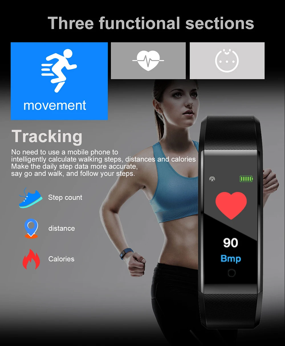 Это многофункциональный умный браслет. Он имеет 0,96 дюймовый TFT экран. Совместимость с iOS 8,0 и выше, Android 4,3 и выше. Это даст вам большой опыт!Особенности:0,96 дюймовый TFT экран, легко увидеть.Классический дизайн циферблата показывает вашу очаровательность.Поддержка мониторинга сердечного ритма и мониторинга сна.Напомните, есть ли сообщение или звонок.Прост в использовании и отлично подходит для бега и занятий спортом на открытом воздухе.Прочный и удобный в носке.Поддержка BT 4,0, Android 4,3 и выше, iOS 8,0 и выше.Водонепроницаемость: Ежедневное Водонепроницаемость (не для принятия душа и плавания).Функции: время, количество шагов, частота сердечных сокращений, кровяное давление, калории, BT, напоминание о информации, применение, напоминание о сидячем положении, мониторинг сна, будильник, несколько языков.Параметры:Чип: Cortex MO Kernel DA14585Экран: 0,96 дюйма TFTBT: BT 4,0Совместимость: с Android 4,3/IOS 8,0 и вышеЗарядка: USB зарядкаБатарея: полимерная литиевая батареяЕмкость аккумулятора: 90 мАчВремя работы: около 7 днейВремя работы в режиме ожидания: около 10 днейЯзык: китайский, английский, испанский, французский, португальский, голландский, немецкий, русский, японский, польскийФункции: подсчет шагов, частота сердечных сокращений, кровяное давление, калории, BT, напоминание информации, применение, BT Камера, повышение экрана, напоминание о сидячем положении, мониторинг сна, будильник.Характеристики:Цвет: черный/красный/фиолетовый/темно-синий/светильник синий (опционально)Материал корпуса: TPEМатериал ремешка: силиконТип застежки: ПряжкаУровень водонепроницаемости: IP67Циферблат Диаметр: 4,3*1,8 см/1,69 * 0.71inЦиферблат Толщина: 1,2 см/0.47inРемешок для часов Ширина: 1,8 см/0.71inРемешок для часов Длина: 24,5 см/9.65inВес часов: 24 гКараульная будка Размеры: 12,5*8,7*3 см/4,92*3,43 * 1.18inВес коробки часов: 44 гПримечания:Поддержка ежедневной водонепроницаемости (не для принятия душа и плавания).Не нажимайте кнопку в воде.Посылка:1 * умный Браслет1 * Руководство пользователя