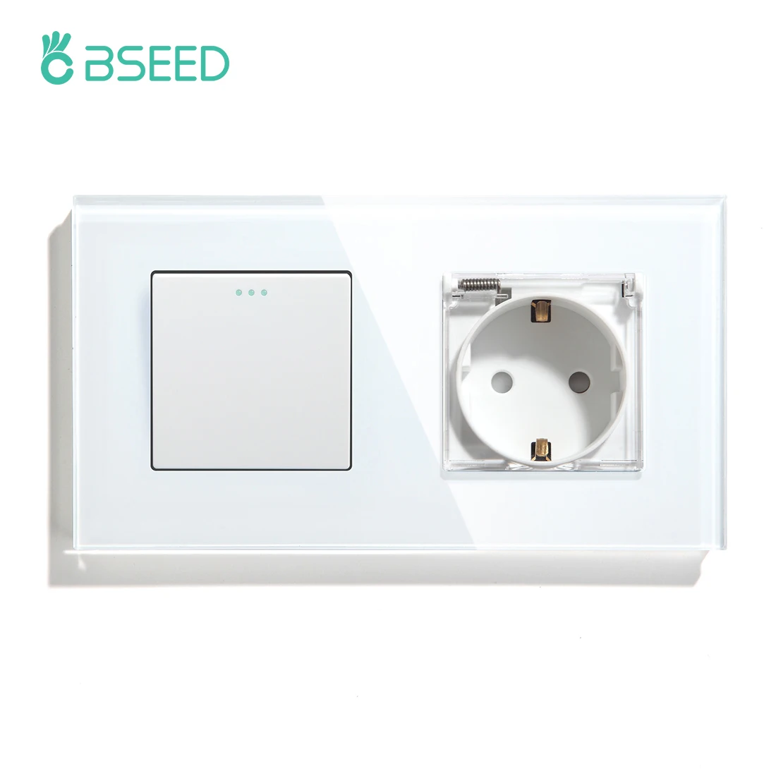 Настенный светильник ель света BSEED, механический переключатель, переключатели с толчком, стеклянная панель, стандарт ЕС, водонепроницаемая розетка с крышкой
