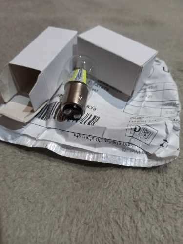 Правильно, подается с коробкой в сумке рядом с другими лампочками вместе с заказом. Я поставил его на мотоцикл для ближнего/тормозного заднего фонаря, и интенсивность при торможении не знает, достаточно ли он, но он освещает немного больше, в фонарике есть больше разницы.