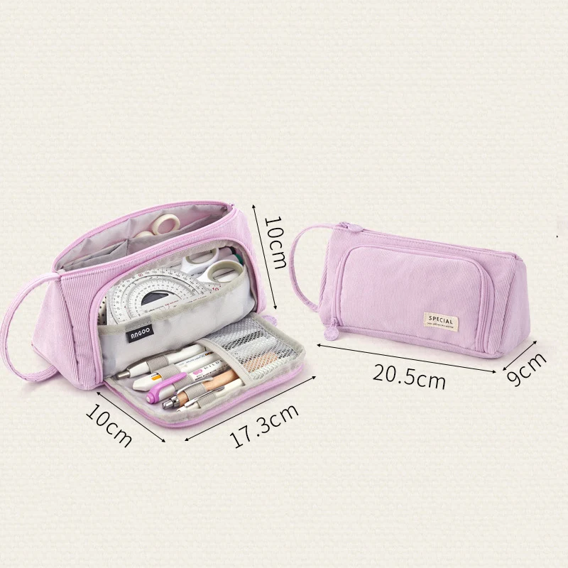 Вельветовый чехол для карандашей ANGOO, Большой Вместительный чехол для школьного карандаша, милый многофункциональный чехол для девочек