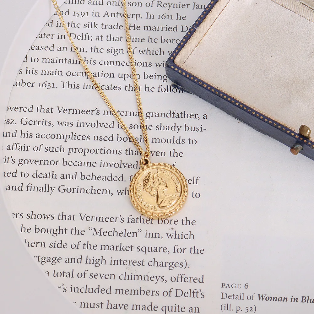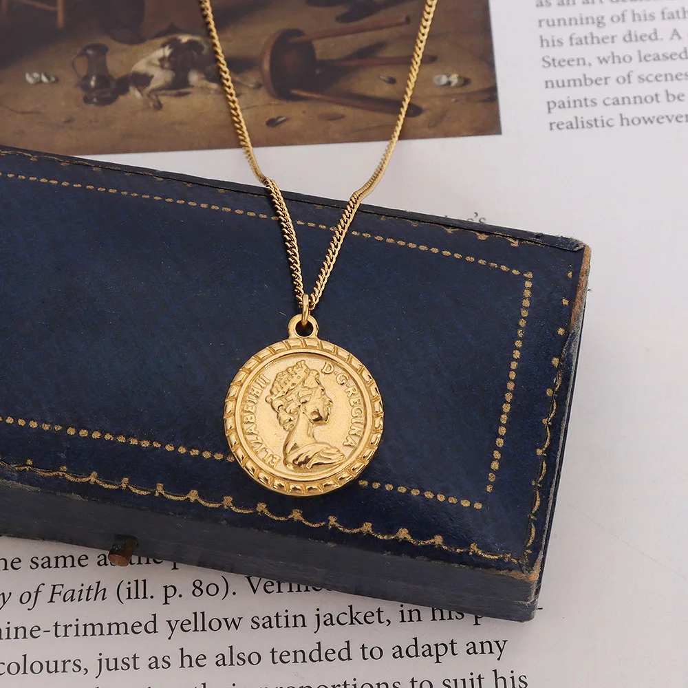 Цепочка с подвеской женская из нержавеющей стали, уникальное круглое ожерелье с кулоном в виде королевской Елизаветы, кубинская цепь с золотым покрытием, винтажная монета