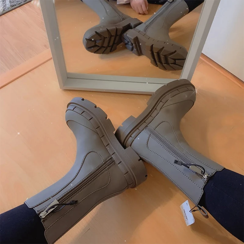 Женские ботинки челси на платформе, повседневные ботинки с круглым ...