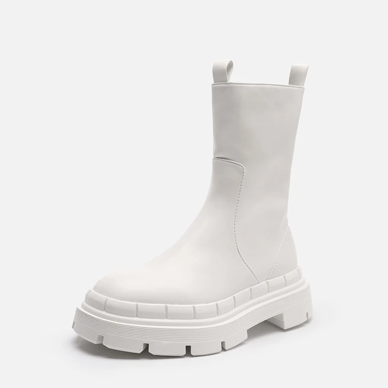 Женские кожаные сапоги до середины икры, белые сапоги Челси на масс...